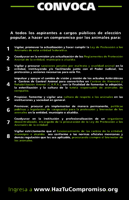 a todos los candidatos a cargos públicos de elección popular de 2016, a asumir por escrito un compromiso por los animales, para que: